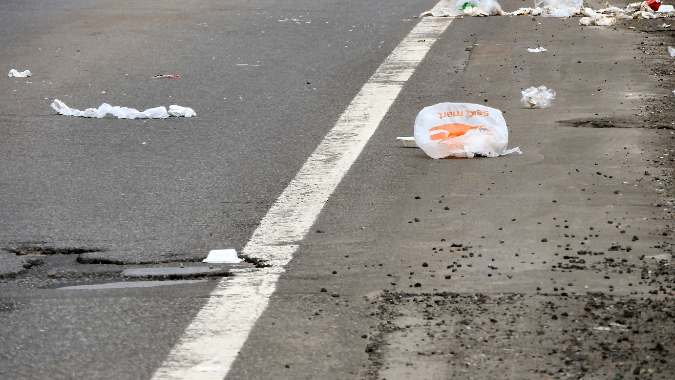 道路に捨てられたゴミ。