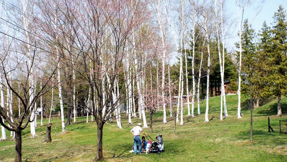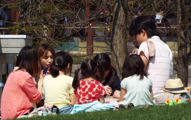 桜は満開、その下で、家族と囲むお弁当。
