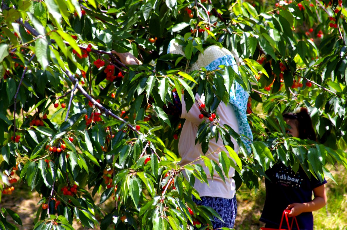 さくらんぼは、真っ赤に実り、摘み取る客の歓声が聞こえた。