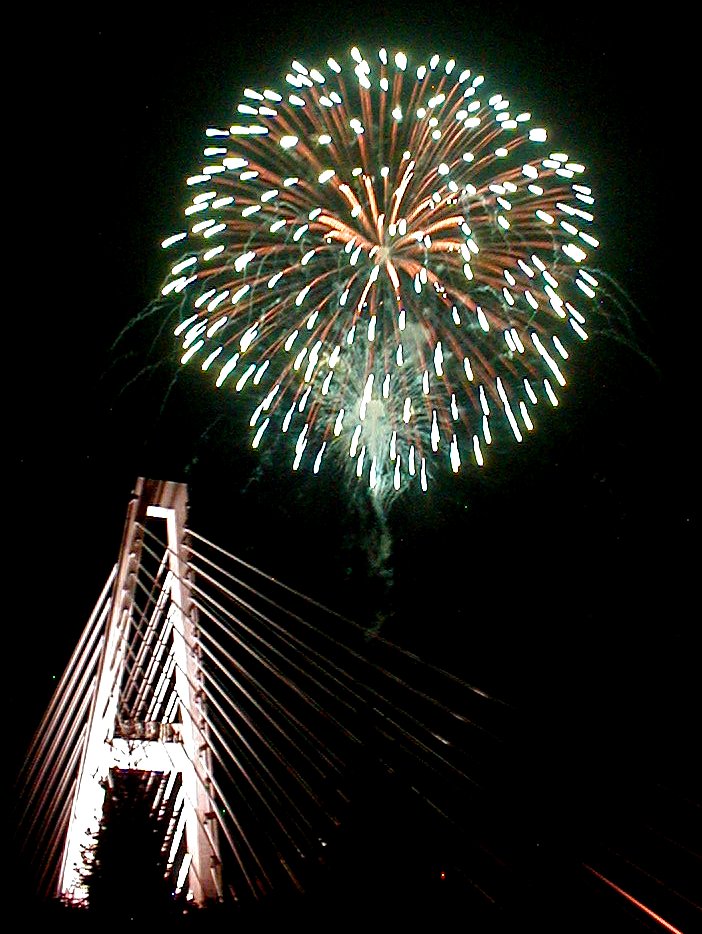 橋と花火のコラボだね。