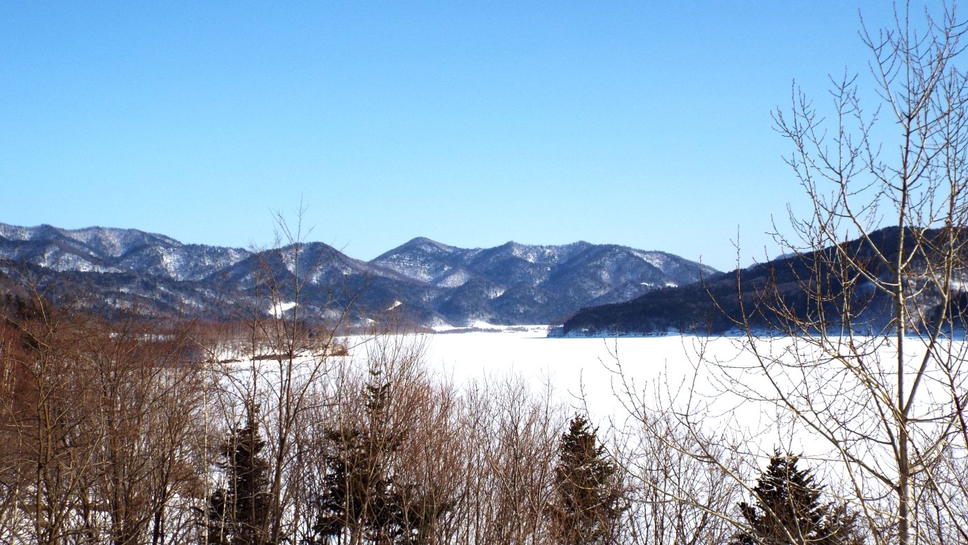 滝里湖は凍りついている