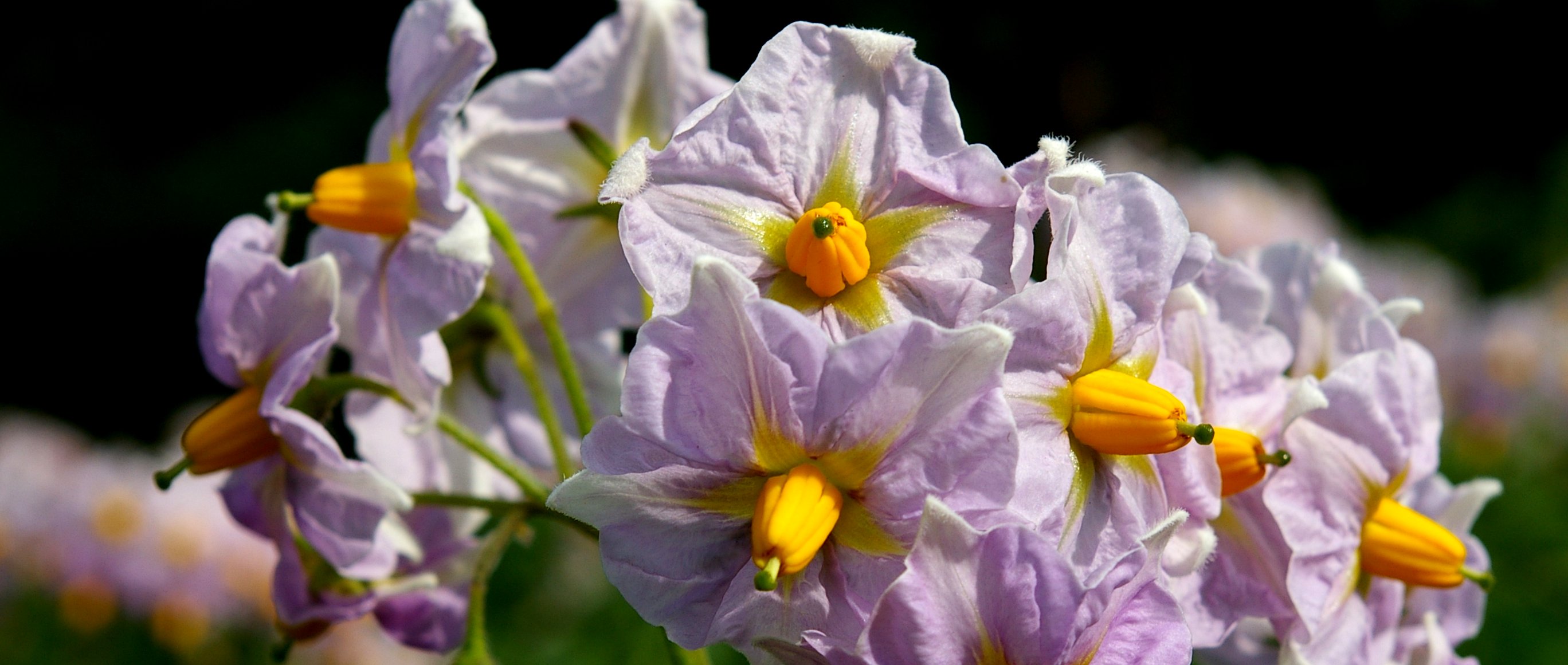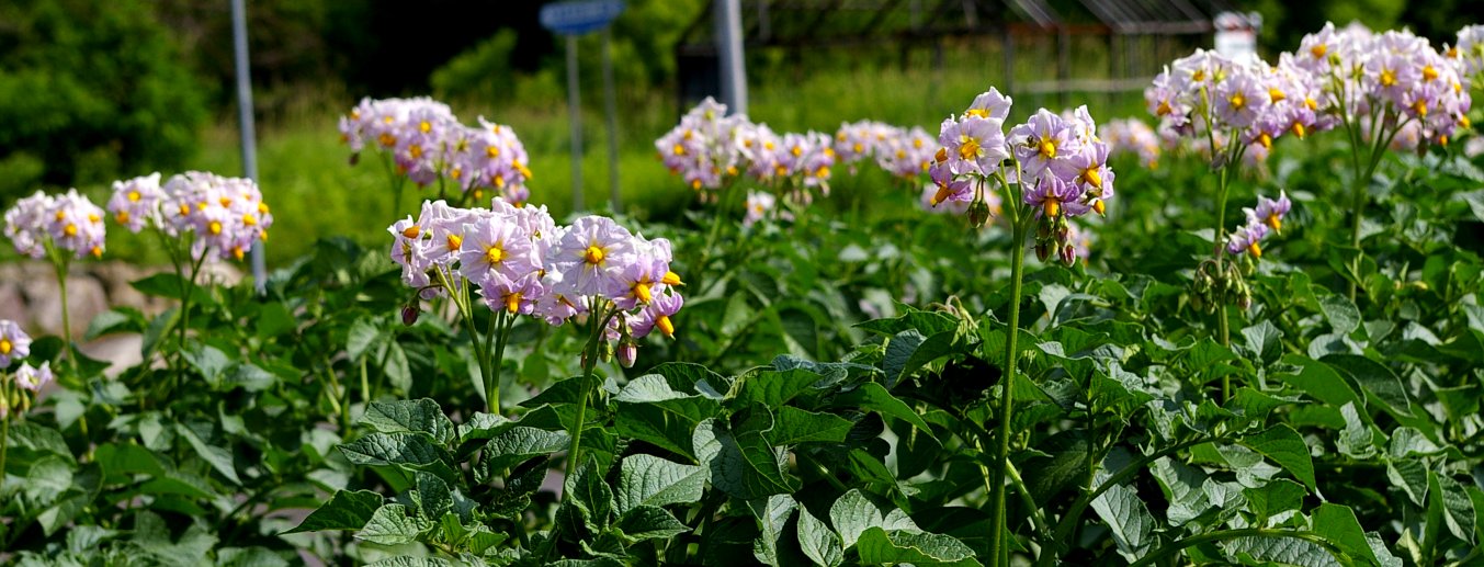 今年も畑にじゃがいもの花が咲いてます。 毎年、思うけど...花の真ん中の鼻で....とぼけた顔に見えてます。