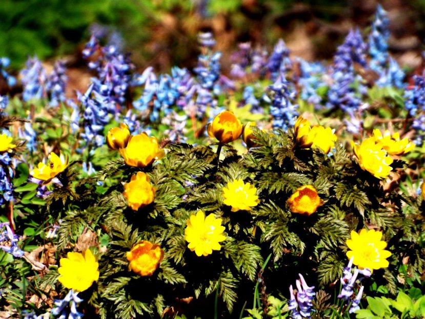 福寿草とエゾエンゴサク