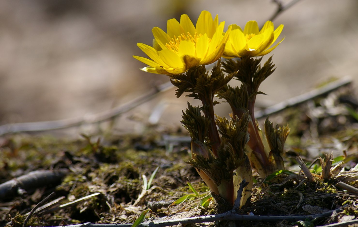 旭ヶ丘公園の福寿草。