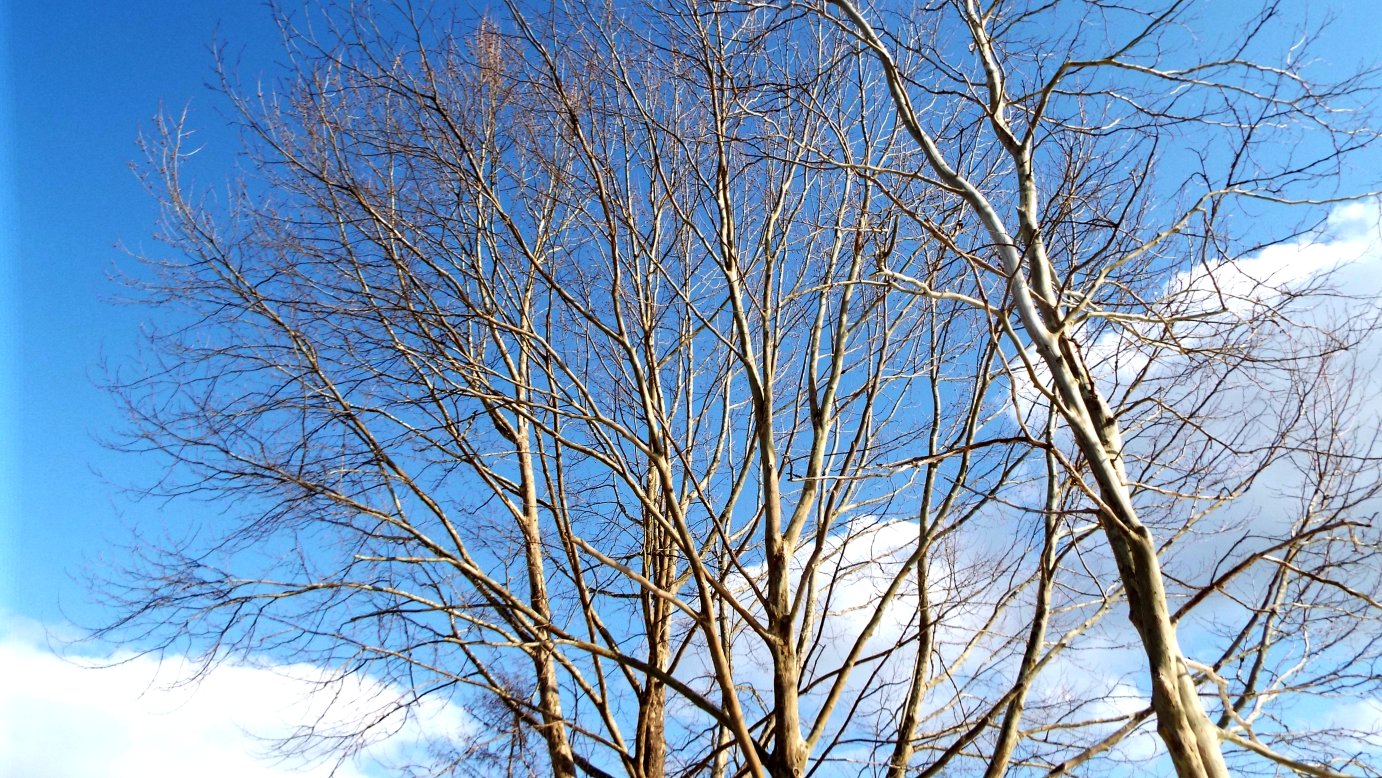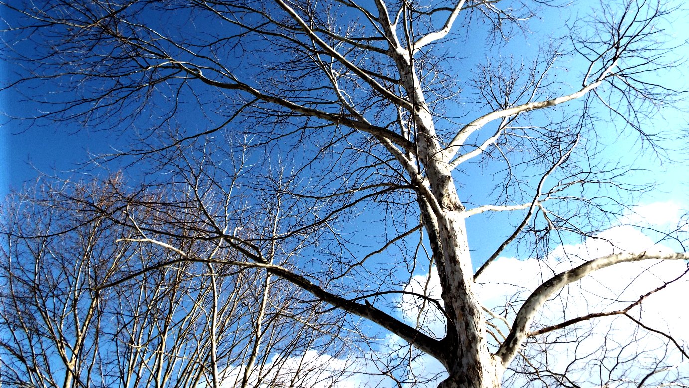 白樺の木は真っ白に、真っ青な青空に枝を伸ばしていた。
