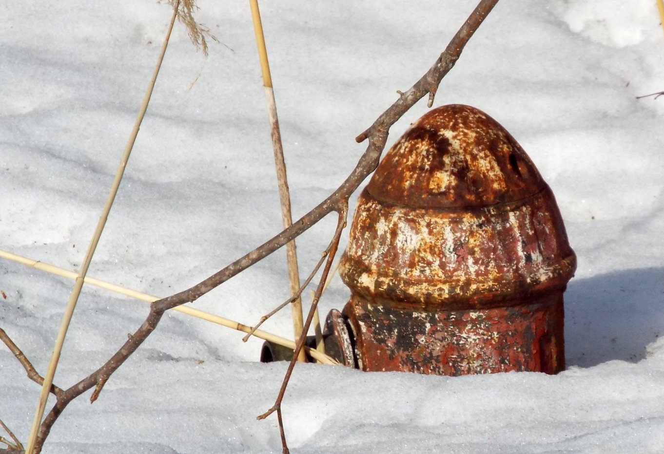 鉱山時代の消火栓が雪の下から顔を出した。