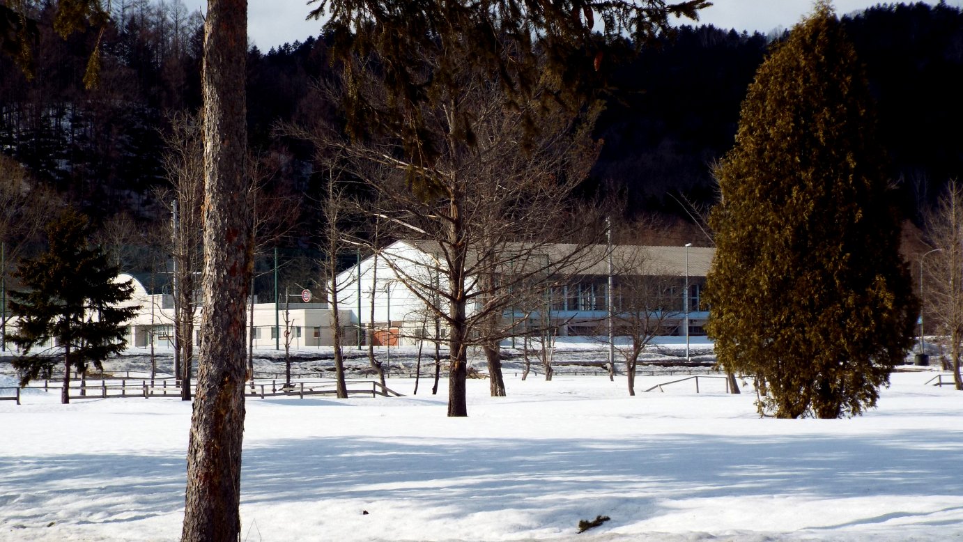 旧西芦別中学校体育館を望みながら....春が来た事を実感した。