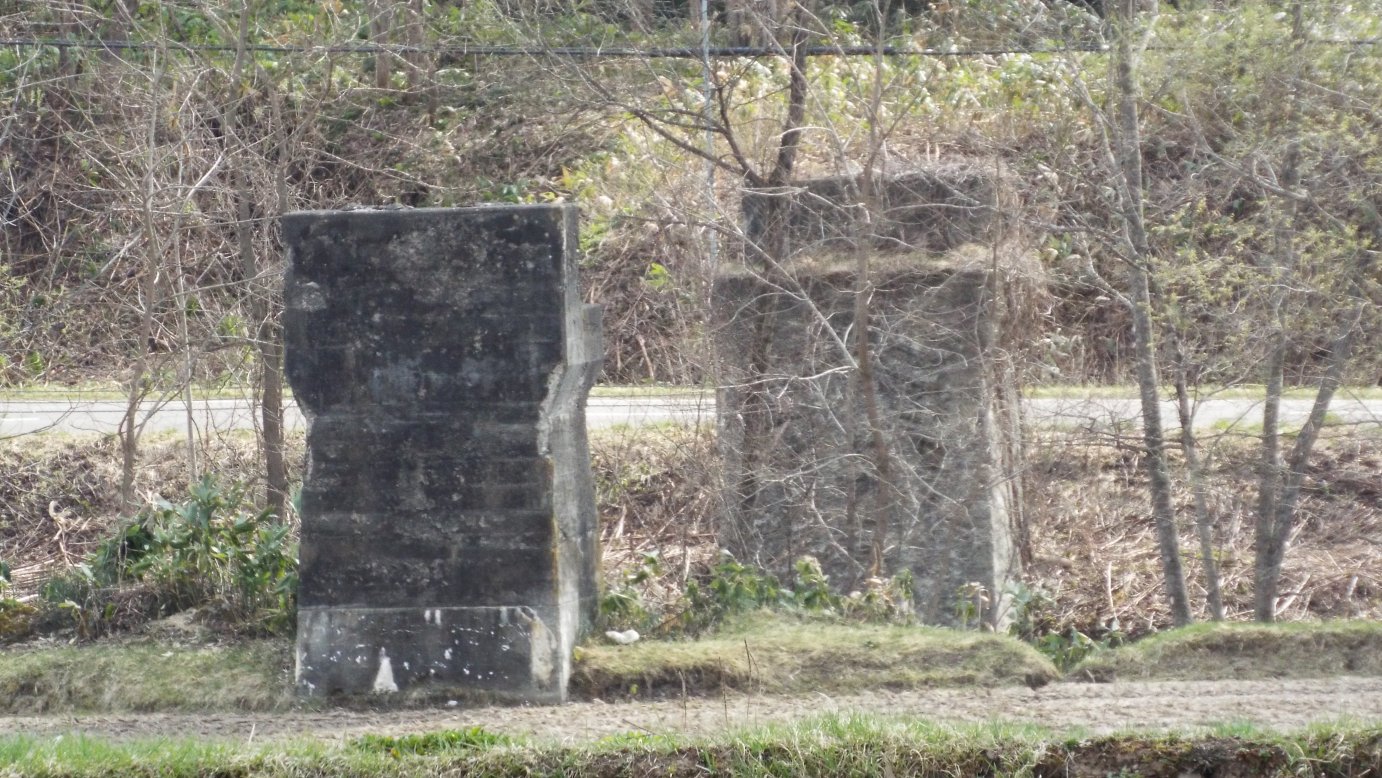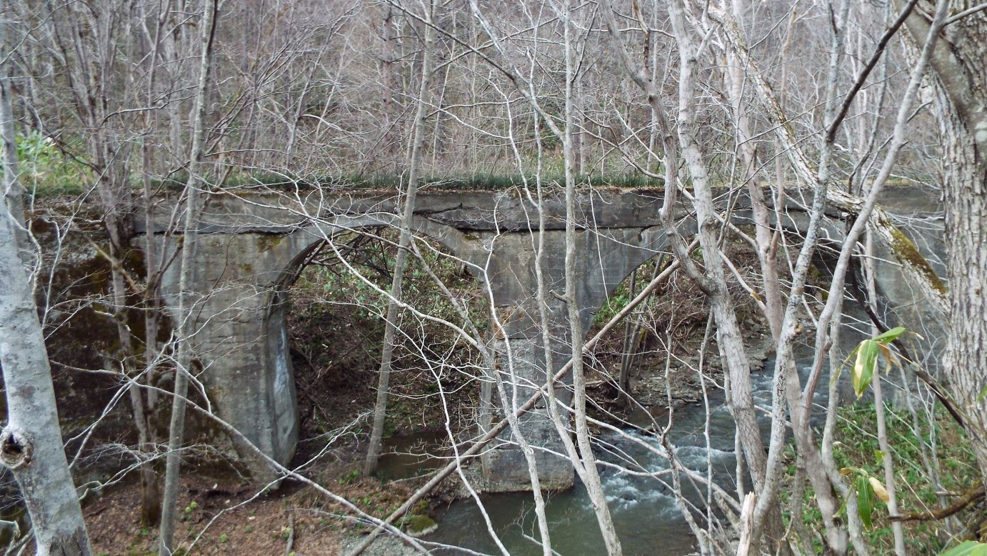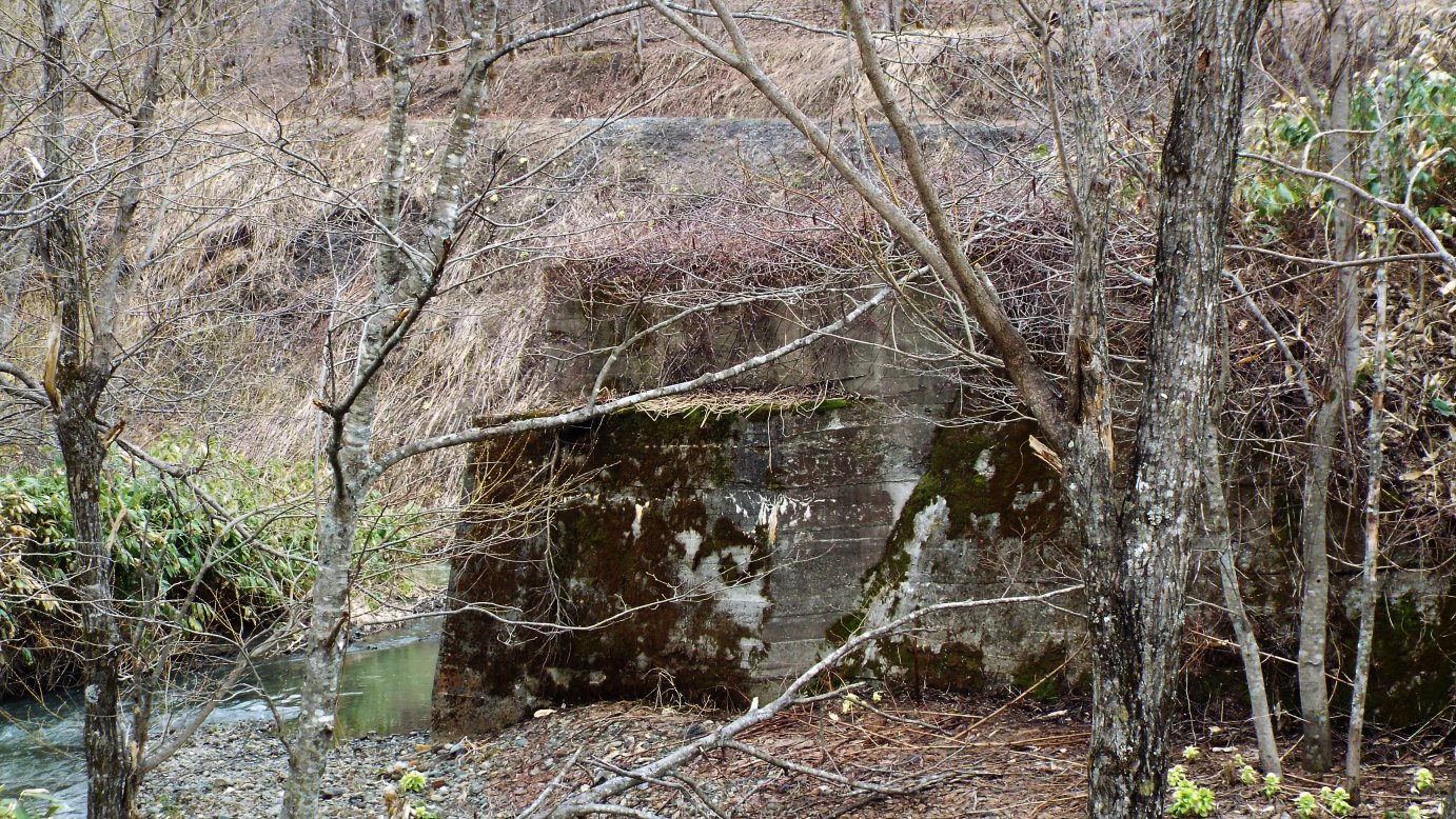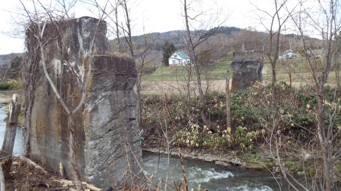旭へ出たあたりに...トンネルの前の橋だが橋桁だけが残っている。