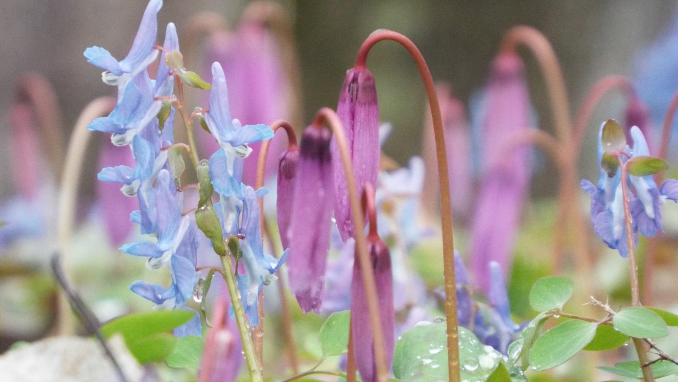 花びらを閉じてうなだれ.....冷たい雨の中、寒さに耐えているように見えた。