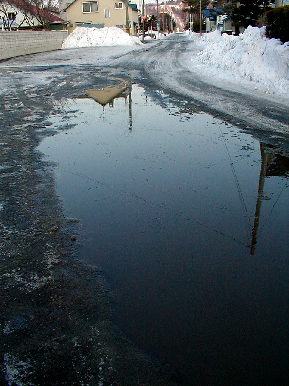 最初の写真は、撮影した写真をひっくり返している。 道路にたまった水に映ったものだ。