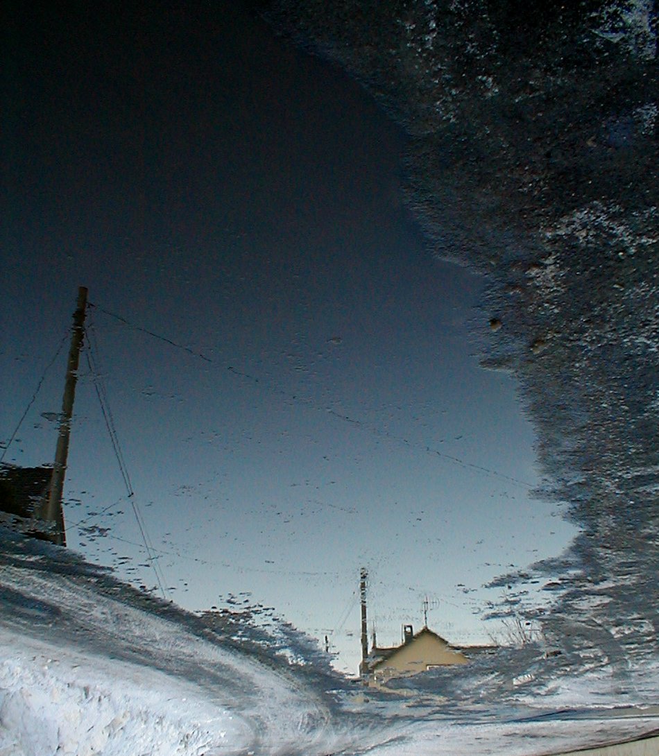 最初の写真は、撮影した写真をひっくり返している。 道路にたまった水に映ったものだ。