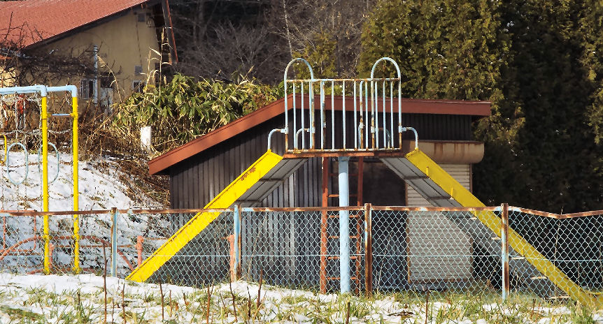 周囲が暗くなり始めた....2歳にもならない娘は登っては滑り降りる。